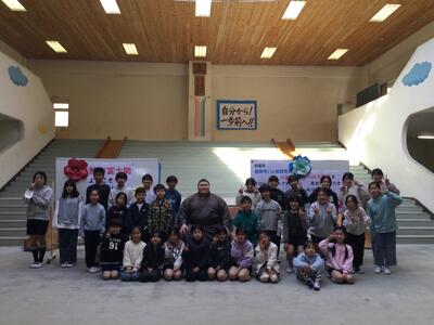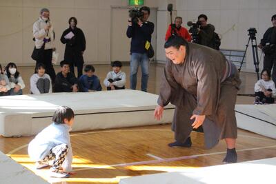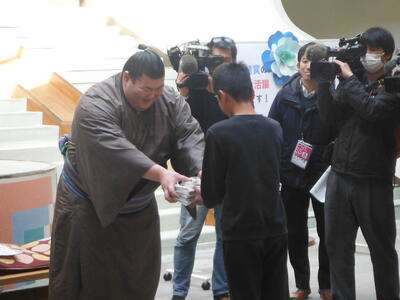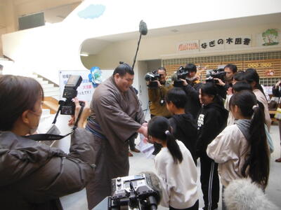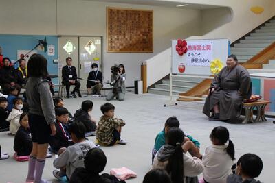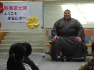 2月3日(火)大相撲で活躍中の熱海市出身力士「熱海富士関」が伊豆山小にやってきました。