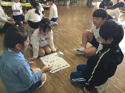 桃山小との交流 投稿: 担当者 (12/12) 12月12日(金)桃山小の1・2年生が来校し、本校の1・2年生と交流をしました。 貨物列車や自作のすごろくゲーム、校歌の紹介など、桃山小の子供たちと楽しく活動することができました。