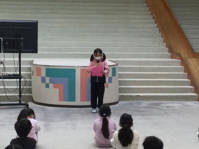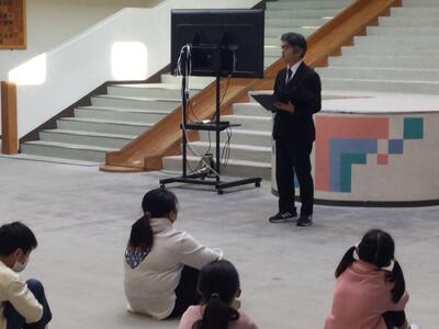 校長先生からは、2学期の活動を振り返り、「小さなことの積み重ねや自分から行動することの大切さ」「1年の締めくくりとしてお世話になった人へ感謝の気持ちを伝える」「命が一番大事、交通事故にあわないように」とお話がありました。